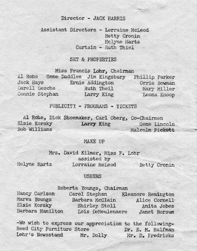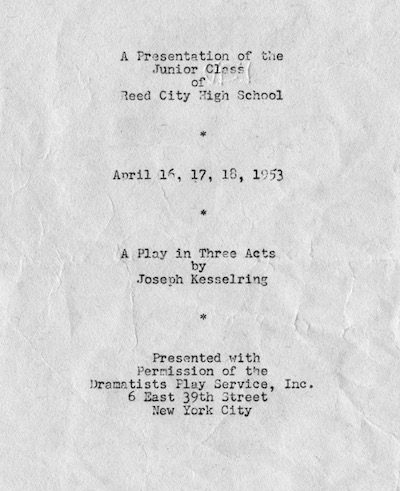 Arsenic And Old Lace, Reed City HS, MI, 1953